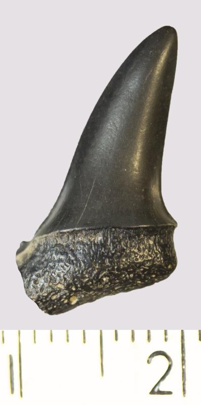 Зуб (фрагмент). Акула. Lamniformes gen. et sp. indet. Классификация: Хордовые Chordata, Позвоночные Vertebrata, Хрящевые рыбы Chondrichthyes, Пластиножаберные Elasmobranchii