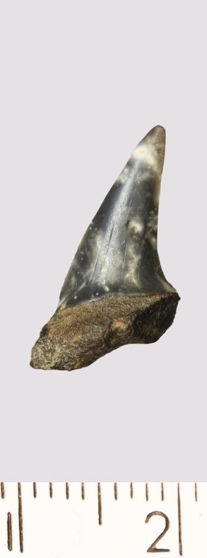 Зуб (фрагмент). Акула. Scapanorhynchus gigas Woodward, 1889. Классификация: Хордовые Chordata, Позвоночные Vertebrata, Хрящевые рыбы Chondrichthyes, Пластиножаберные Elasmobranchii