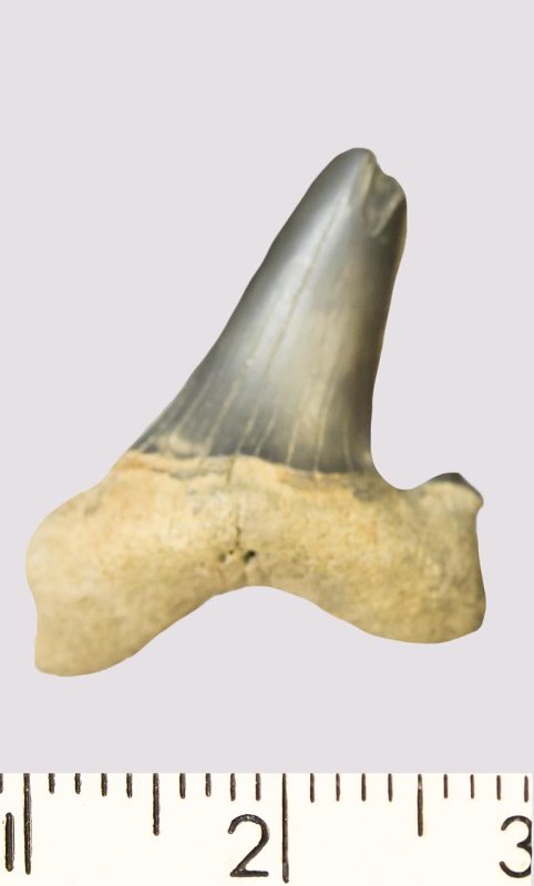 Зуб. Акула. Scapanorhynchus gigas Woodward, 1889. Классификация: Хордовые Chordata, Позвоночные Vertebrata, Хрящевые рыбы Chondrichthyes, Пластиножаберные Elasmobranchii