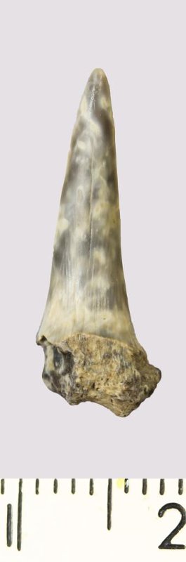 Зуб (фрагмент). Акула. Rhaphiodus sp. Классификация: Хордовые Chordata, Позвоночные Vertebrata, Хрящевые рыбы Chondrichthyes, Пластиножаберные Elasmobranchii