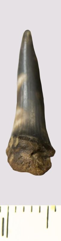 Зуб (фрагмент). Акула. Rhaphiodus sp. Классификация: Хордовые Chordata, Позвоночные Vertebrata, Хрящевые рыбы Chondrichthyes, Пластиножаберные Elasmobranchii