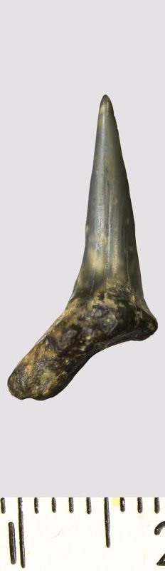 Зуб. Акула. Rhaphiodus sp. Классификация: Хордовые Chordata, Позвоночные Vertebrata, Хрящевые рыбы Chondrichthyes, Пластиножаберные Elasmobranchii