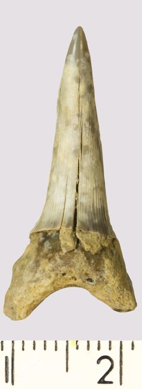 Зуб. Акула. Rhaphiodus sp. Классификация: Хордовые Chordata, Позвоночные Vertebrata, Хрящевые рыбы Chondrichthyes, Пластиножаберные Elasmobranchii