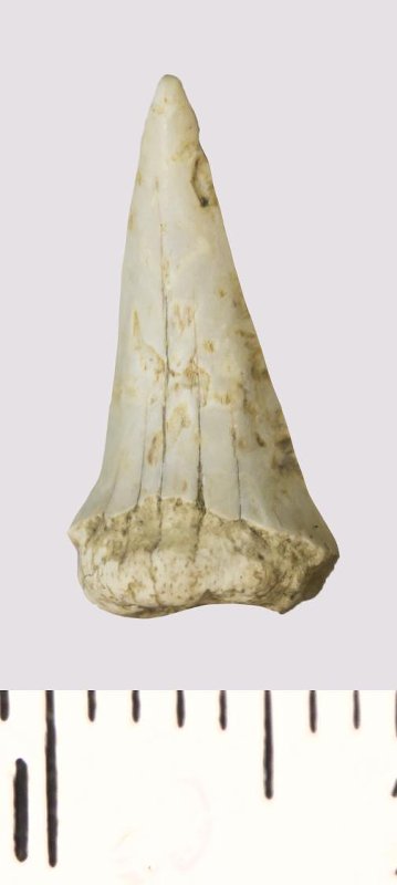 Зуб (фрагмент). Акула. Archaeolamna kopingensis (Davis, 1890). Классификация: Хордовые Chordata, Позвоночные Vertebrata, Хрящевые рыбы Chondrichthyes, Пластиножаберные Elasmobranchii