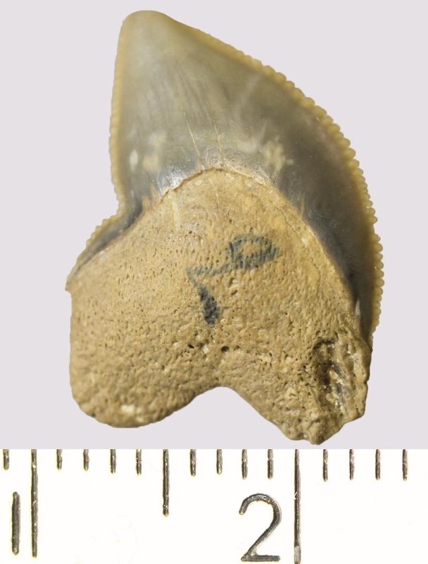 Зуб. Акула. Anacorax kaupi (Agassiz, 1843). Классификация: Хордовые Chordata, Позвоночные Vertebrata, Хрящевые рыбы Chondrichthyes, Пластиножаберные Elasmobranchii