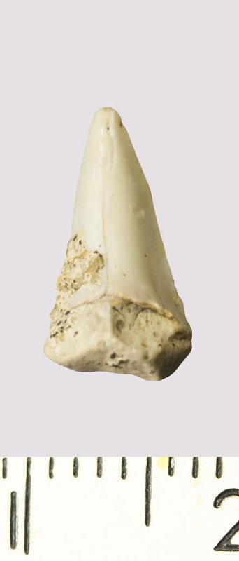 Зуб (фрагмент). Акула. Archaeolamna kopingensis (Davis, 1890). Классификация: Хордовые Chordata, Позвоночные Vertebrata, Хрящевые рыбы Chondrichthyes, Пластиножаберные Elasmobranchii