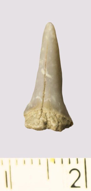 Зуб (фрагмент). Акула. Archaeolamna kopingensis (Davis, 1890). Классификация: Хордовые Chordata, Позвоночные Vertebrata, Хрящевые рыбы Chondrichthyes, Пластиножаберные Elasmobranchii