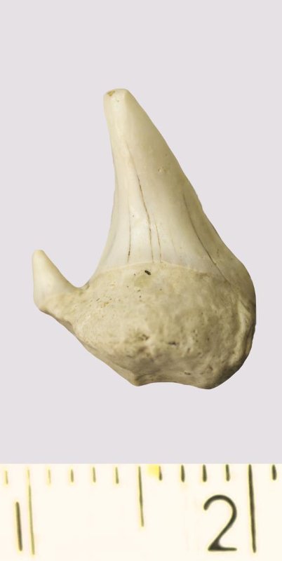 Зуб (фрагмент). Акула. Archaeolamna kopingensis (Davis, 1890). Классификация: Хордовые Chordata, Позвоночные Vertebrata, Хрящевые рыбы Chondrichthyes, Пластиножаберные Elasmobranchii