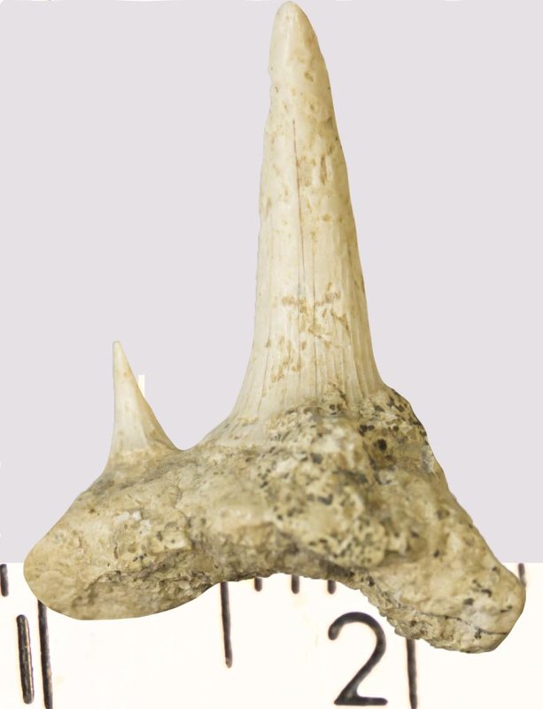 Зуб. Акула. Rhaphiodus sp. Классификация: Хордовые Chordata, Позвоночные Vertebrata, Хрящевые рыбы Chondrichthyes, Пластиножаберные Elasmobranchii