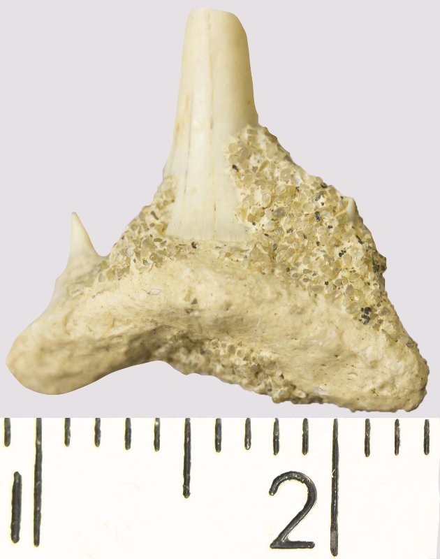 Зуб. Акула. Rhaphiodus sp. Классификация: Хордовые Chordata, Позвоночные Vertebrata, Хрящевые рыбы Chondrichthyes, Пластиножаберные Elasmobranchii