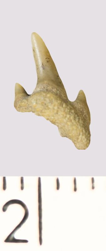 Зуб. Акула. Odontaspis sp. Классификация: Хордовые Chordata, Позвоночные Vertebrata, Хрящевые рыбы Chondrichthyes, Пластиножаберные Elasmobranchii