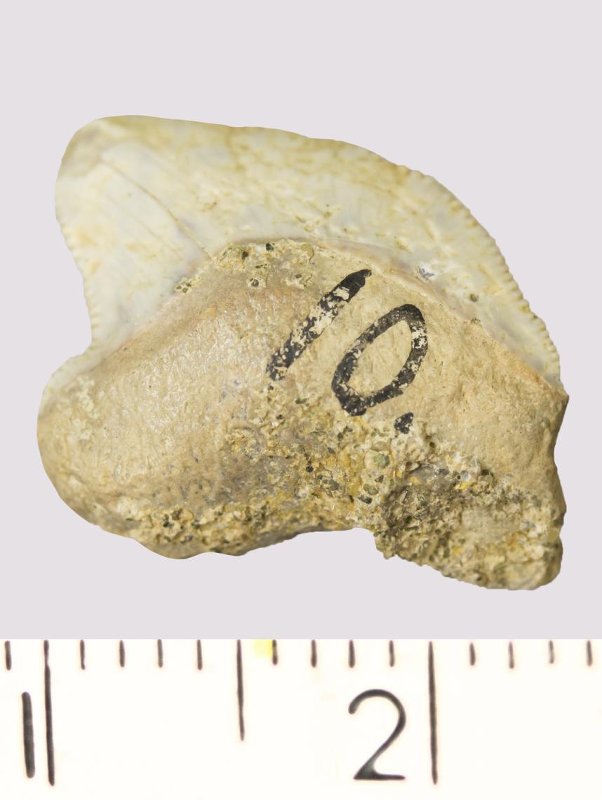 Зуб. Акула. Anacorax kaupi (Agassiz, 1843). Классификация: Хордовые Chordata, Позвоночные Vertebrata, Хрящевые рыбы Chondrichthyes, Пластиножаберные Elasmobranchii
