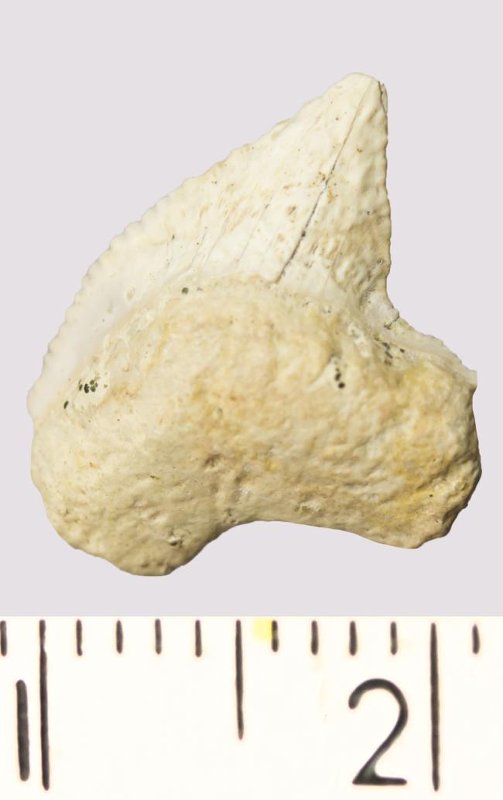 Зуб. Акула. Anacorax kaupi (Agassiz, 1843). Классификация: Хордовые Chordata, Позвоночные Vertebrata, Хрящевые рыбы Chondrichthyes, Пластиножаберные Elasmobranchii
