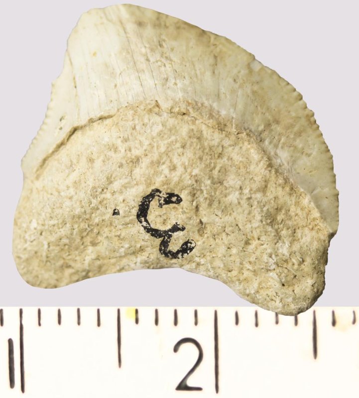Зуб. Акула. Anacorax kaupi (Agassiz, 1843). Классификация: Хордовые Chordata, Позвоночные Vertebrata, Хрящевые рыбы Chondrichthyes, Пластиножаберные Elasmobranchii