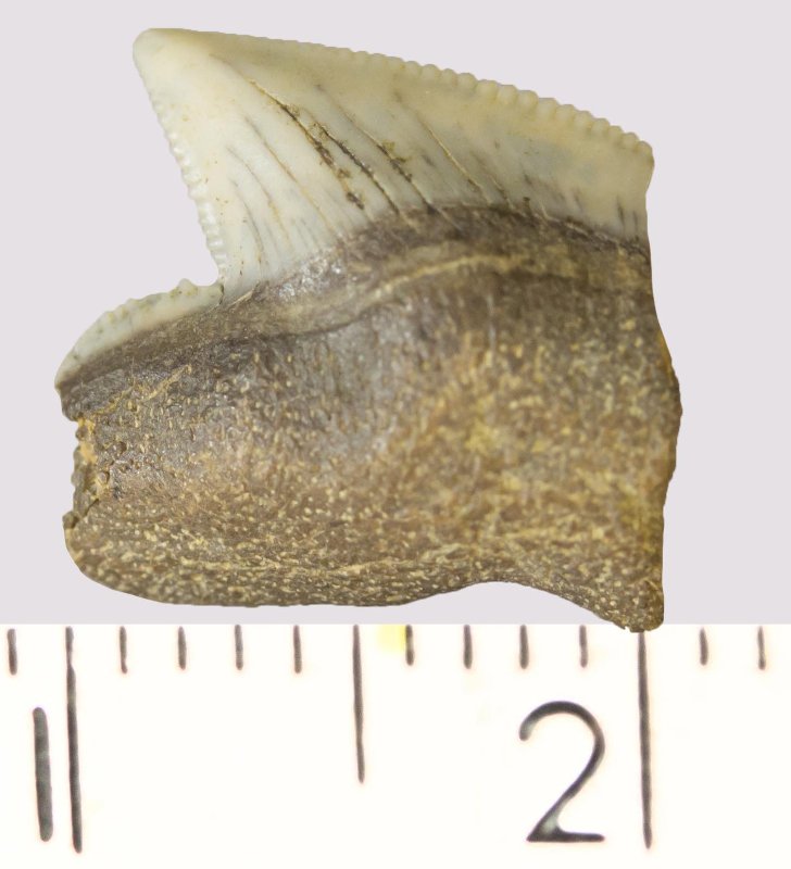 Зуб. Акула. Anacorax kaupi (Agassiz, 1843). Классификация: Хордовые Chordata, Позвоночные Vertebrata, Хрящевые рыбы Chondrichthyes, Пластиножаберные Elasmobranchii
