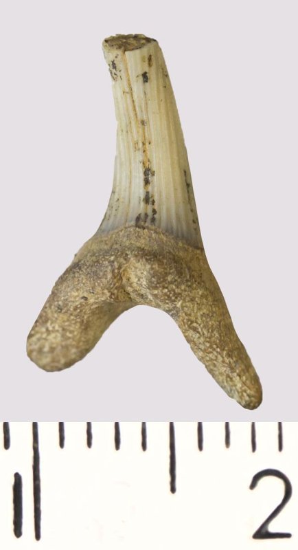 Зуб. Акула. Scapanorhynchus rhaphiodon Agassiz, 1843. Классификация: Хордовые Chordata, Позвоночные Vertebrata, Хрящевые рыбы Chondrichthyes, Пластиножаберные Elasmobranchii