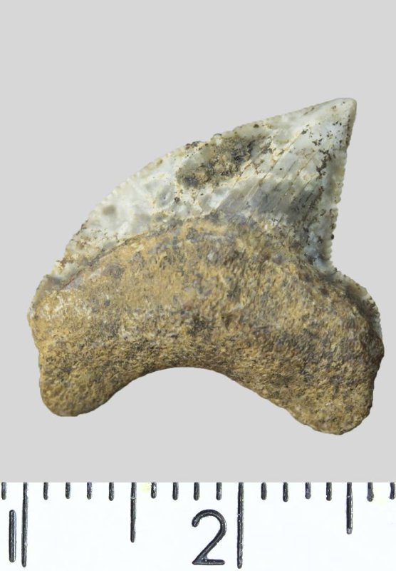 Зуб. Акула. Squalicorax sp. Классификация: Хордовые Chordata, Позвоночные Vertebrata, Хрящевые рыбы Chondrichthyes, Пластиножаберные Elasmobranchii