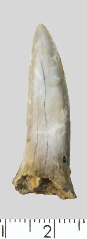 Зуб (фрагмент). Акула. Hispidaspis sp. Классификация: Хордовые Chordata, Позвоночные Vertebrata, Хрящевые рыбы Chondrichthyes, Пластиножаберные Elasmobranchii