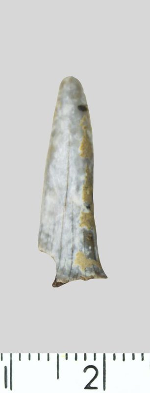 Зуб (фрагмент). Акула. Hispidaspis sp. Классификация: Хордовые Chordata, Позвоночные Vertebrata, Хрящевые рыбы Chondrichthyes, Пластиножаберные Elasmobranchii