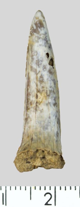 Зуб (фрагмент). Акула. Hispidaspis sp. Классификация: Хордовые Chordata, Позвоночные Vertebrata, Хрящевые рыбы Chondrichthyes, Пластиножаберные Elasmobranchii