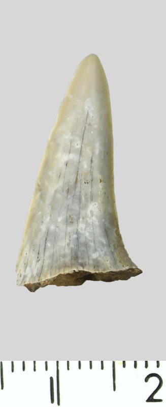 Зуб (фрагмент). Акула. Hispidaspis sp. Классификация: Хордовые Chordata, Позвоночные Vertebrata, Хрящевые рыбы Chondrichthyes, Пластиножаберные Elasmobranchii