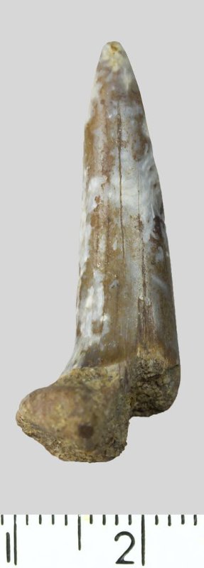 Зуб (фрагмент). Акула. Hispidaspis sp. Классификация: Хордовые Chordata, Позвоночные Vertebrata, Хрящевые рыбы Chondrichthyes, Пластиножаберные Elasmobranchii