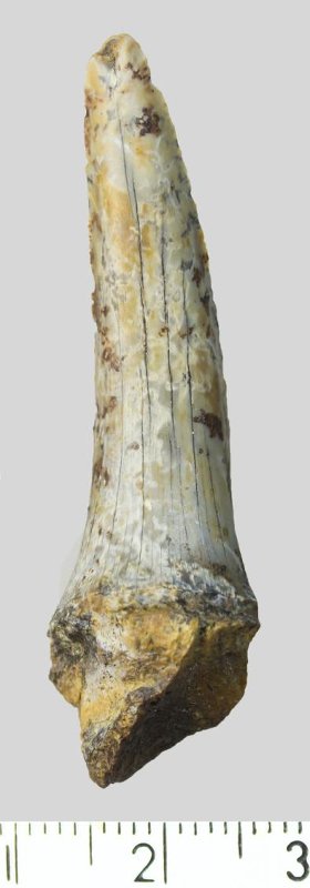 Зуб (фрагмент). Акула. Hispidaspis sp. Классификация: Хордовые Chordata, Позвоночные Vertebrata, Хрящевые рыбы Chondrichthyes, Пластиножаберные Elasmobranchii