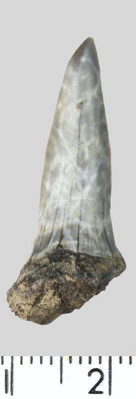 Зуб (фрагмент). Акула. Hispidaspis sp. Классификация: Хордовые Chordata, Позвоночные Vertebrata, Хрящевые рыбы Chondrichthyes, Пластиножаберные Elasmobranchii
