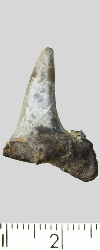 Зуб. Акула. Hispidaspis sp. Классификация: Хордовые Chordata, Позвоночные Vertebrata, Хрящевые рыбы Chondrichthyes, Пластиножаберные Elasmobranchii