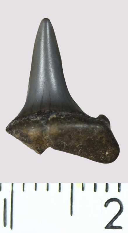Зуб. Акула. Odontaspis venusta Leriche, 1906. Классификация: Хордовые Chordata, Позвоночные Vertebrata, Хрящевые рыбы Chondrichthyes, Пластиножаберные Elasmobranchii