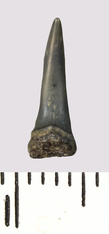 Зуб (фрагмент). Акула. Eostriatolamia venusta Leriche, 1906. Классификация: Хордовые Chordata, Позвоночные Vertebrata, Хрящевые рыбы Chondrichthyes, Пластиножаберные Elasmobranchii