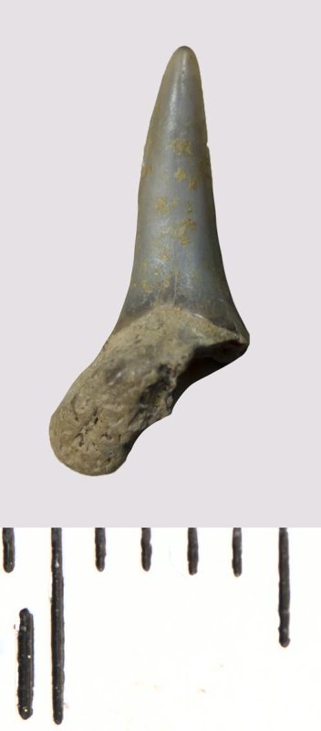 Зуб. Акула. Eostriatolamia venusta Leriche, 1906. Классификация: Хордовые Chordata, Позвоночные Vertebrata, Хрящевые рыбы Chondrichthyes, Пластиножаберные Elasmobranchii