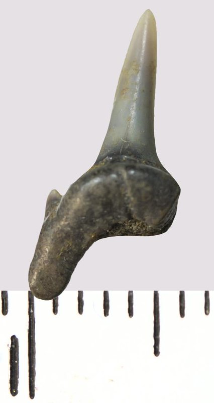 Зуб. Акула. Eostriatolamia venusta Leriche, 1906. Классификация: Хордовые Chordata, Позвоночные Vertebrata, Хрящевые рыбы Chondrichthyes, Пластиножаберные Elasmobranchii