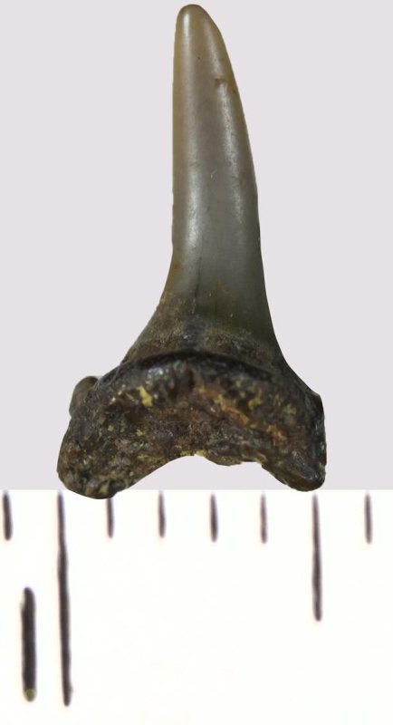 Зуб. Акула. Eostriatolamia venusta Leriche, 1906. Классификация: Хордовые Chordata, Позвоночные Vertebrata, Хрящевые рыбы Chondrichthyes, Пластиножаберные Elasmobranchii