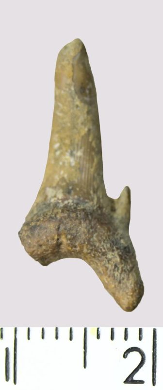 Зуб. Акула. Rhaphiodus sp. Классификация: Хордовые Chordata, Позвоночные Vertebrata, Хрящевые рыбы Chondrichthyes, Пластиножаберные Elasmobranchii