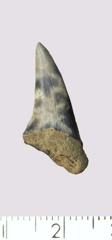 Зуб (фрагмент). Акула. Scapanorhynchus gigas Woodward, 1889. Классификация: Хордовые Chordata, Позвоночные Vertebrata, Хрящевые рыбы Chondrichthyes, Пластиножаберные Elasmobranchii