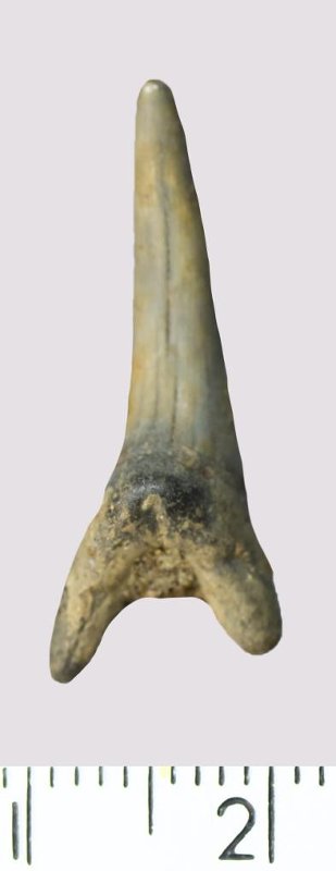 Зуб. Акула. Rhaphiodus sp. Классификация: Хордовые Chordata, Позвоночные Vertebrata, Хрящевые рыбы Chondrichthyes, Пластиножаберные Elasmobranchii