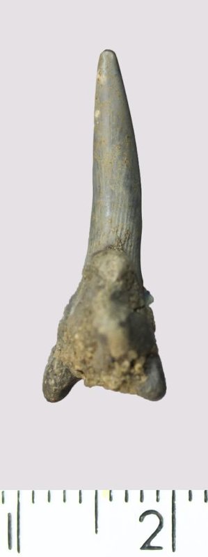 Зуб. Акула. Rhaphiodus sp. Классификация: Хордовые Chordata, Позвоночные Vertebrata, Хрящевые рыбы Chondrichthyes, Пластиножаберные Elasmobranchii