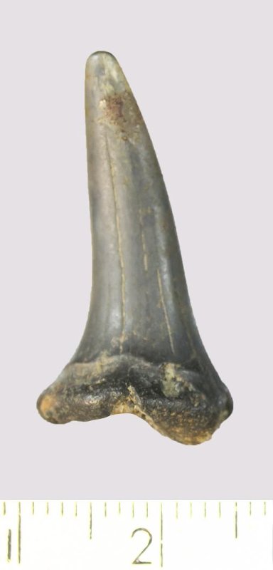 Зуб (фрагмент). Акула. Scapanorhynchus gigas Woodward, 1889. Классификация: Хордовые Chordata, Позвоночные Vertebrata, Хрящевые рыбы Chondrichthyes, Пластиножаберные Elasmobranchii