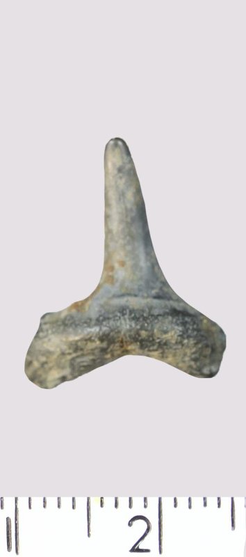 Зуб. Акула. Scapanorhynchus gigas Woodward, 1889. Классификация: Хордовые Chordata, Позвоночные Vertebrata, Хрящевые рыбы Chondrichthyes, Пластиножаберные Elasmobranchii