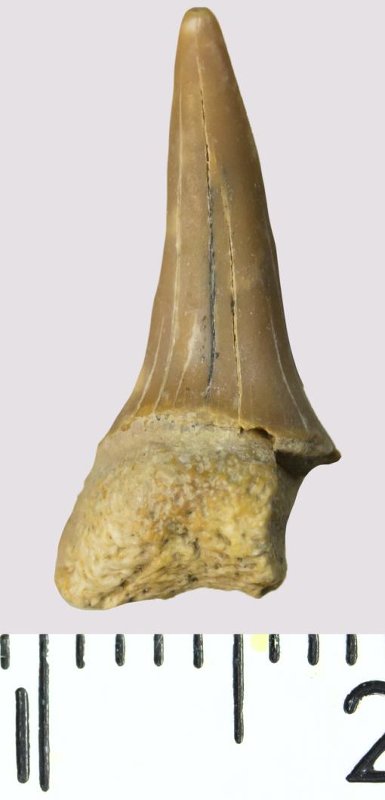 Зуб. Акула. Lamniformes gen. et sp. indet. Классификация: Хордовые Chordata, Позвоночные Vertebrata, Хрящевые рыбы Chondrichthyes, Пластиножаберные Elasmobranchii