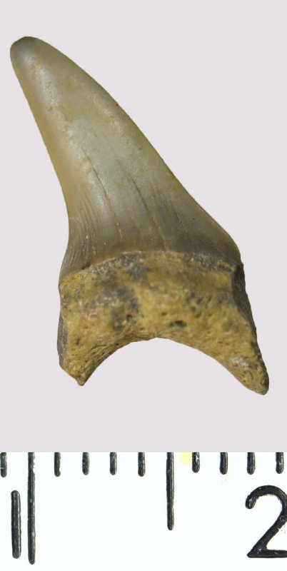 Зуб. Акула. Lamniformes gen. et sp. indet. Классификация: Хордовые Chordata, Позвоночные Vertebrata, Хрящевые рыбы Chondrichthyes, Пластиножаберные Elasmobranchii