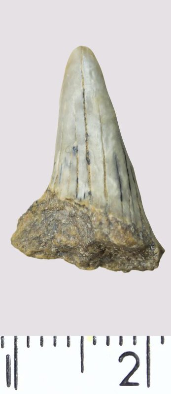 Зуб (фрагмент). Акула. Cretoxyrhina sp. Классификация: Хордовые Chordata, Позвоночные Vertebrata, Хрящевые рыбы Chondrichthyes, Пластиножаберные Elasmobranchii