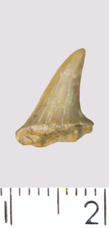 Зуб (фрагмент). Акула. Lamniformes gen. et sp. indet. Классификация: Хордовые Chordata, Позвоночные Vertebrata, Хрящевые рыбы Chondrichthyes, Пластиножаберные Elasmobranchii