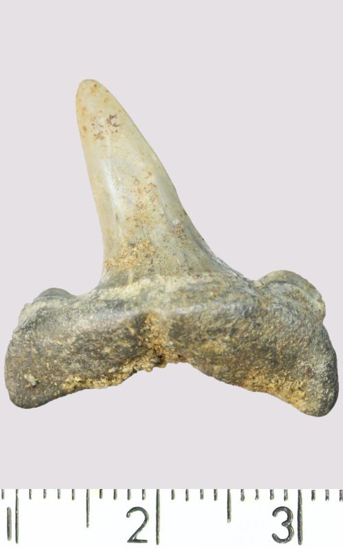 Зуб. Акула. Scapanorhynchus gigas Woodward, 1889. Классификация: Хордовые Chordata, Позвоночные Vertebrata, Хрящевые рыбы Chondrichthyes, Пластиножаберные Elasmobranchii