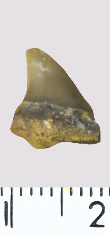 Зуб (фрагмент). Акула. Cretoxyrhina sp. Классификация: Хордовые Chordata, Позвоночные Vertebrata, Хрящевые рыбы Chondrichthyes, Пластиножаберные Elasmobranchii