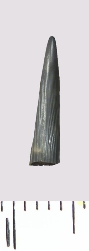Зуб (фрагмент). Акула. Scapanorhynchus rhaphiodon Agassiz, 1843. Классификация: Хордовые Chordata, Позвоночные Vertebrata, Хрящевые рыбы Chondrichthyes, Пластиножаберные Elasmobranchii