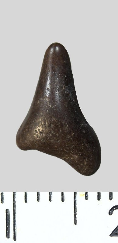 Зуб. Акула. Odontaspis macrorhiza (Cope) Leriche, 1902. Классификация: Хордовые Chordata, Позвоночные Vertebrata, Хрящевые рыбы Chondrichthyes, Пластиножаберные Elasmobranchii