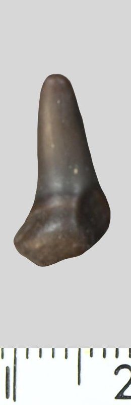 Зуб (фрагмент). Акула. Scapanorhynchus gigas Woodward, 1889. Классификация: Хордовые Chordata, Позвоночные Vertebrata, Хрящевые рыбы Chondrichthyes, Пластиножаберные Elasmobranchii