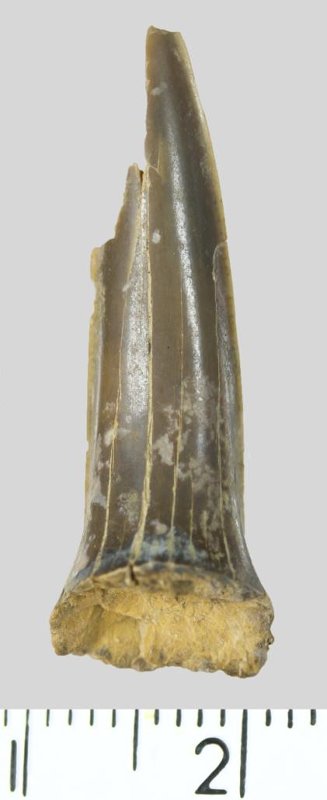 Зуб (фрагмент). Акула. Hispidaspis sp. Классификация: Хордовые Chordata, Позвоночные Vertebrata, Хрящевые рыбы Chondrichthyes, Пластиножаберные Elasmobranchii